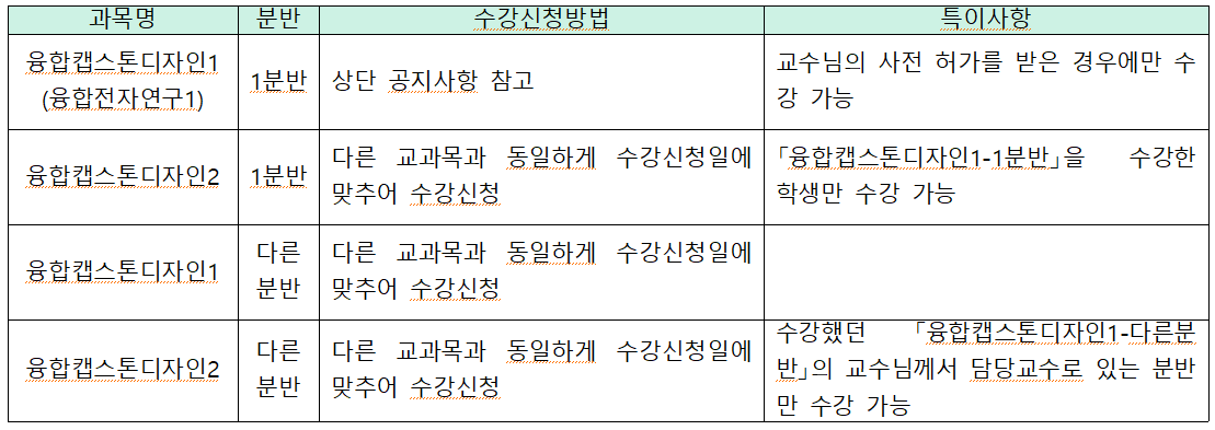 Q3. 융합캡스톤디자인1과 융합캡스톤디자인2의 수강신청 방법이 다른가요?
