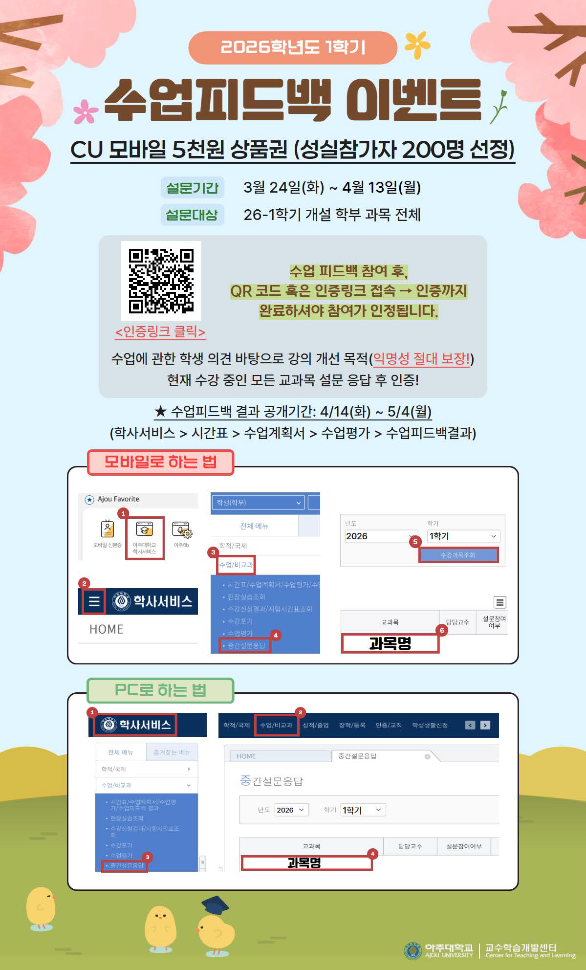 2026학년도 1학기 수업피드백 참여 안내 (3/24~4/13)