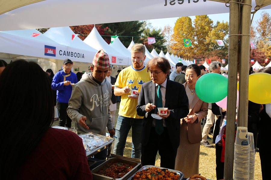 우리 학교에 재학중인 외국인 학생들이 자국의 음식을 소개하고 문화를 공유하는 '아주 인터내셔널데이(Ajou International Day'가 열렸다. '제24회 아주 인터내셔널 데이'는 지난 7일 가온마당(체육관 뒤 잔디밭)에서 프랑스와 스페인, 미국, 파키스탄, 캄보디아, 우즈베키스탄, 러시아, 스웨덴 등 40여개국에서 온 외국인 학생 300여명이 참여한 가운데 개최됐다. 이날 행사는 ▲국가별 문화·음식 소개 ▲각국 문화 공연 ▲한국 민속놀이 체험 등으로 구성됐다. 특히, 학부와 대학원, 교환학생으로 재학 중인 라오스·베트남·스페인 학생팀과 한국과 중국, 베트남 학생들은 공연을 준비해 자국의 전통 문화를 우리 학교 학생들에과 함께 공유했다. 한편, 우리 학교는 지난 1996년부터 매년 '아주 인터내셔널 데이' 행사를 개최하고 있다.