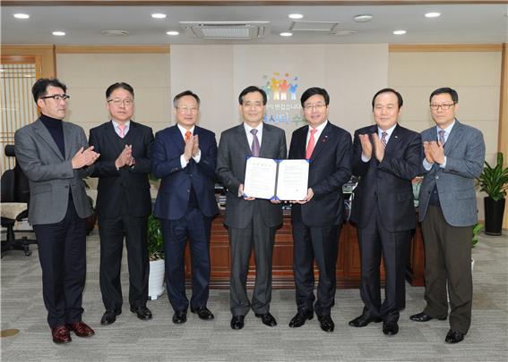 우리 학교 LINC사업단 산하의 스마트그리드 산학협력협의체가 산업통상자원부에서 주관하는 2014년 산업핵심기술개발사업 창의산업 분야 「에너지 소비 고효율화를 위한 제조 엔지니어링 서비스 개발」 과제에 선정되어 3년간 총 30억 원을 지원받게 됐다. 산업핵심기술개발사업은 산업통산자원부가 창의산업, 소재부품산업, 시스템산업 등 3개 분야에서 세부 과제를 선정해 3년부터 5년까지 과제 특성에 따라 차등 지원하는 사업이다. 이번 과제에 선정된 주체인 스마트그리드 산학협력협의체는 지난해 9월 ICT분야 전문가 30명으로 출발해 기술교류, 현장실습, 취업지원 등 왕성하게 활동하고 있다. 과제 수행은 협의체를 모체로 신설될 스마트그리드연구센터(센터장 이주연 교수)가 주관하며 회원사인 (주)우암(회장 송혜자), (주)인코어드 테크놀로지스(사장 최종웅), (주)제니스텍(사장 윤석열), (주)포스코 ICT(사장 최두환) 등이 함께 참여한다. 특히, 우리 학교 LINC사업단은 판교-광교-동탄-흥덕을 잇는 산업협력 생태계를 구축하기 위해 13개 산학협력협의체를 운영하고 있고 이중 하나인 스마트그리드 산학협력협의체가 이번 과제에 선정되는 등 산학협력의 모범사례로 떠오르고 있다. 선정된 연구과제의 핵심내용은 생산정보와 에너지정보를 실시간 연동하는 Smart FEMS(Factory Energy Management System)기술을 이용하여 시스템 차원의 에너지효율화와 공급 신뢰성 극대화하는 에너지 운영기술이다. 또 Smart FEMS에 녹색 산업현장을 구현하는 사물인터넷(IoT) 기술, CPPS(Cyber Physical Production System) 시뮬레이터와 에너지 수요관리 프로세스를 통합 관리하는 융합과제이다. 이주연 스마트그리드 연구센터장은 “판교지역의 산학협력 생태계 구축의 일환으로 추진된 이 과제는 국내 최초의 Smart Factory와 Smart Grid의 융합과제로서 에너지 다소비 업종인 철강업종에 시범적용을 하게 되고, 모든 제조업 공장에 확대 적용할 계획을 갖고 있다”고 말했다. [스마트그리드 산학협력협의체 현판수여식]