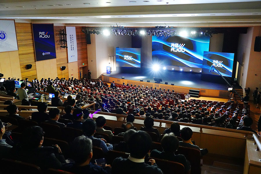 축사에 앞서 아주대학교의 과거와 현재, 그리고 미래를 조망하는 소개 영상이 상영됐다. 이어 학생들과 교직원들의 비전에 대한 기대와 응원이 담긴 ‘내가 바라는 아주대’ 영상이 공개되어 참석자들의 공감을 이끌어냈다.