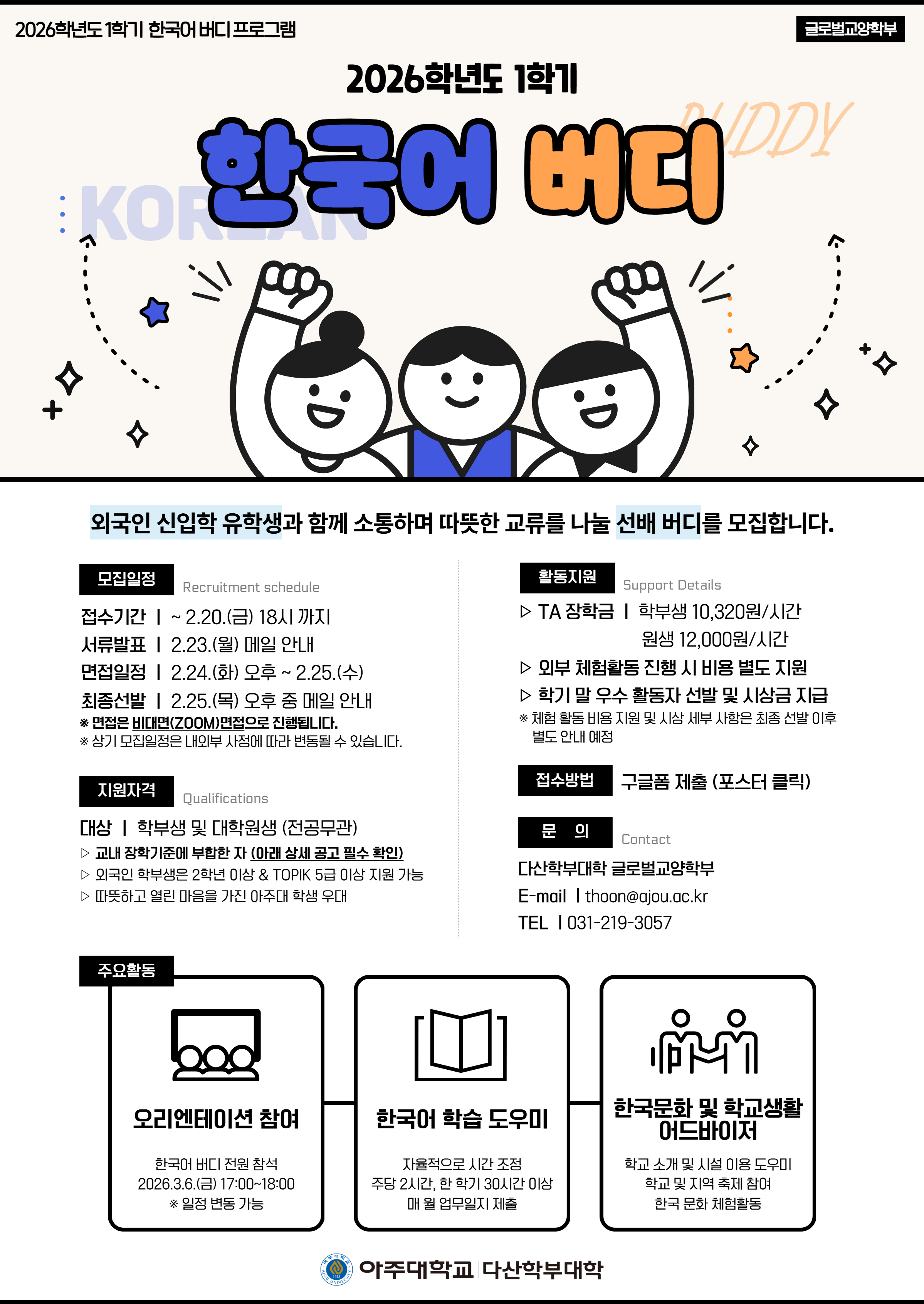 [비교과] [글로벌교양학부] 2026-1 한국어 버디 모집 (~2/20(금))