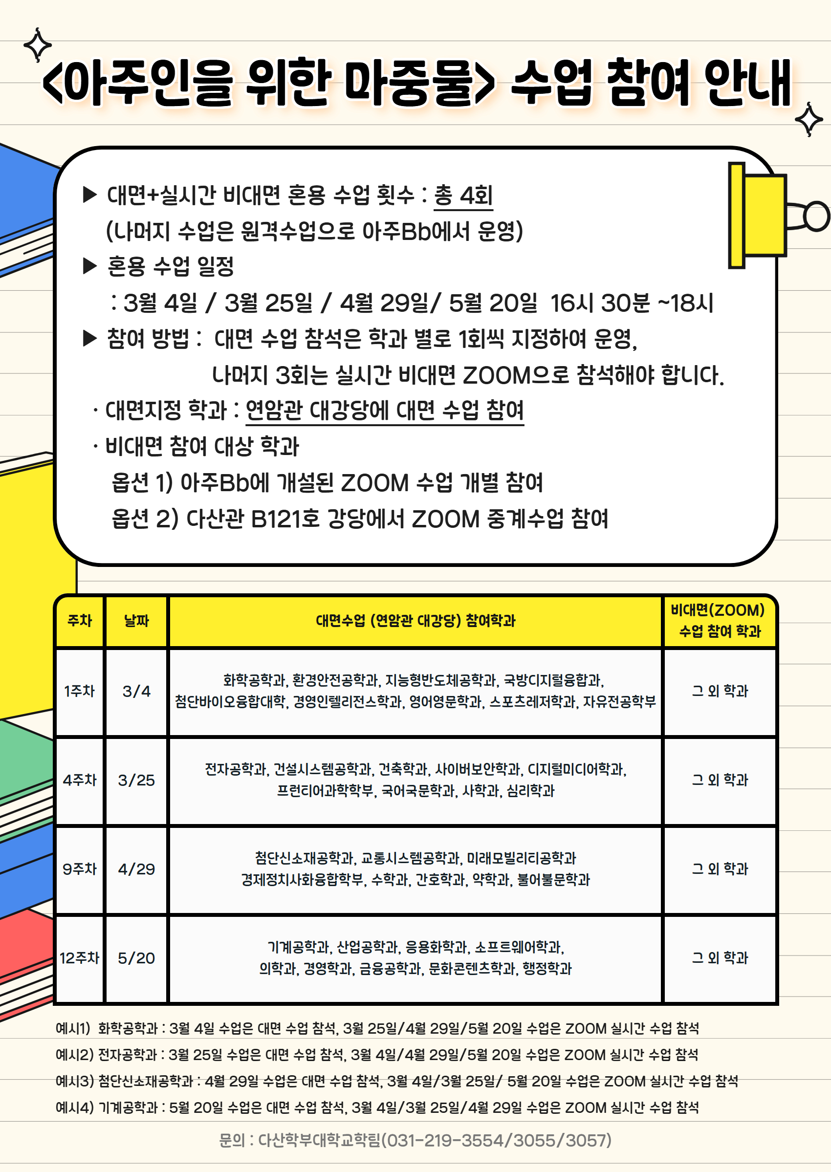 [학사] (수정) <신입생 필독!>『아주인을 위한 마중물』대면 + 실시간 비대면(ZOOM) 혼용 수업 안내