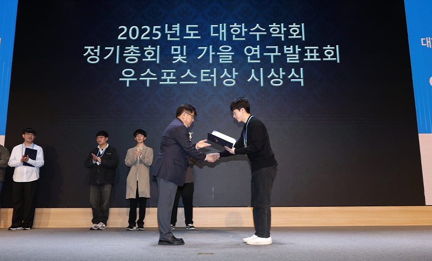 아주대학교 대학원 수학과 박사과정 윤영한 학생이 ‘2025년 대한수학회 및 가을연구발표회’에서 우수포스터상을 수상했다.