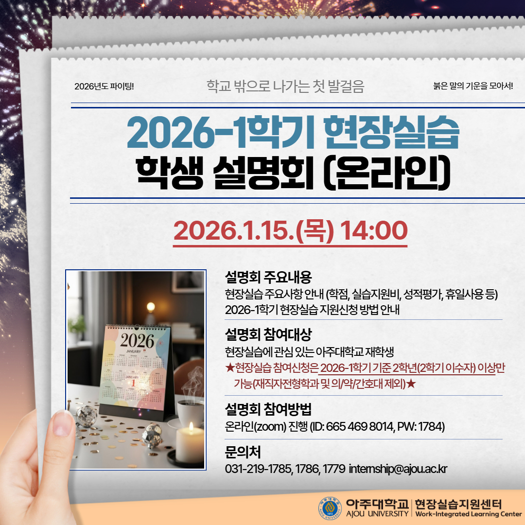 [공지] 26-1학기 현장실습 학생 지원신청 안내