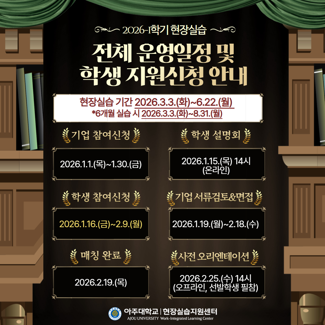 아래와 같이 26-1학기 현장실습 학생 지원신청 안내드리니,