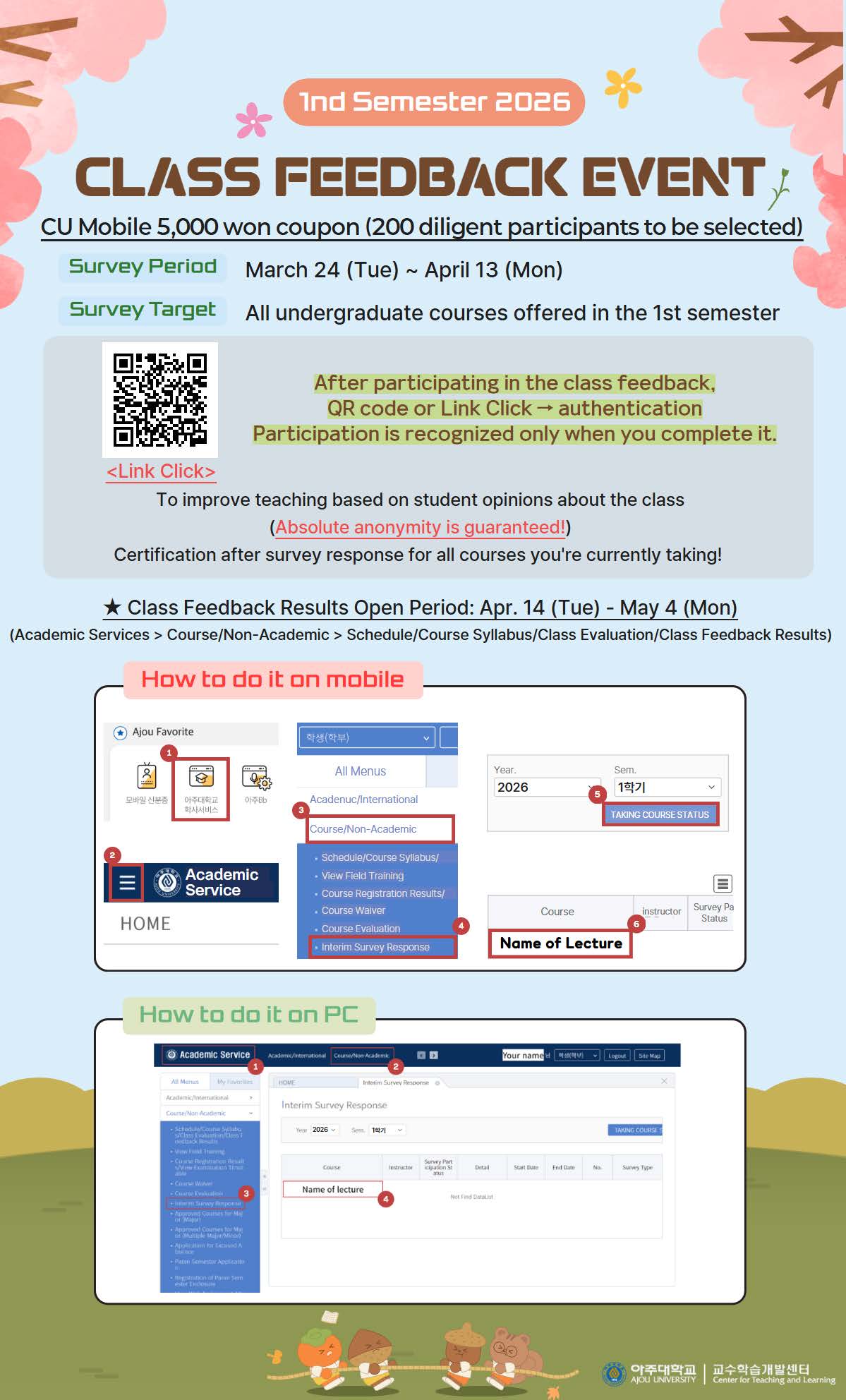 2026학년도 1학기 수업피드백 실시에 따른 협조 요청
